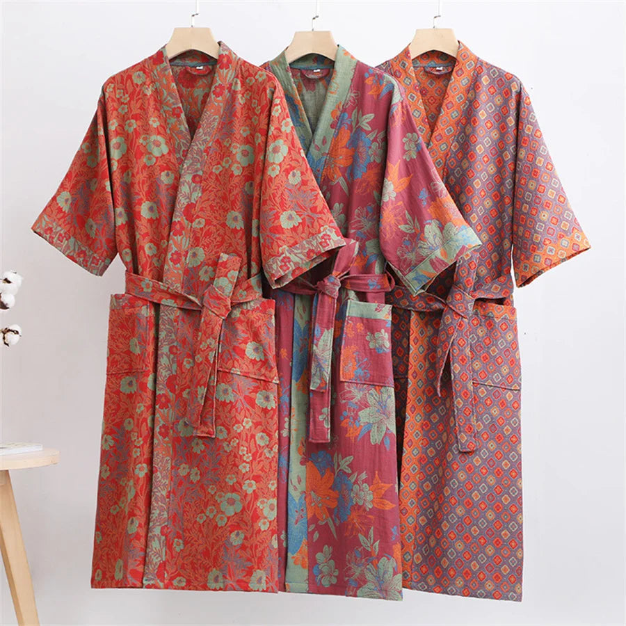 Peignoir de bain homme coton polyester – Kimono coton-polyester, manches 3⁄4 et mi-mollet